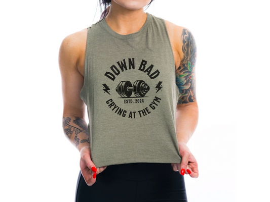 Down Bad Workout Crop Top – 'Crying at the Gym' Athletic Tee for Fitness Lovers
