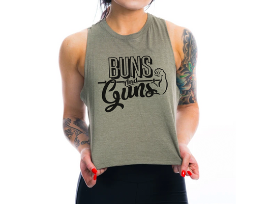 Buns & Guns Workout Crop Tank Top – Funny Women’s Gym Shirt