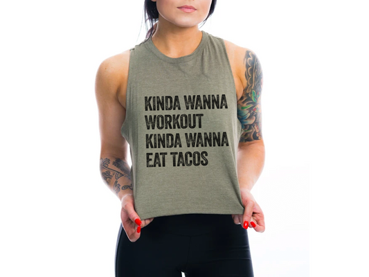 Kinda Wanna Workout Kinda Wanna Eat Tacos Workout Crop Tank Top – Funny Gym Shirt for Women